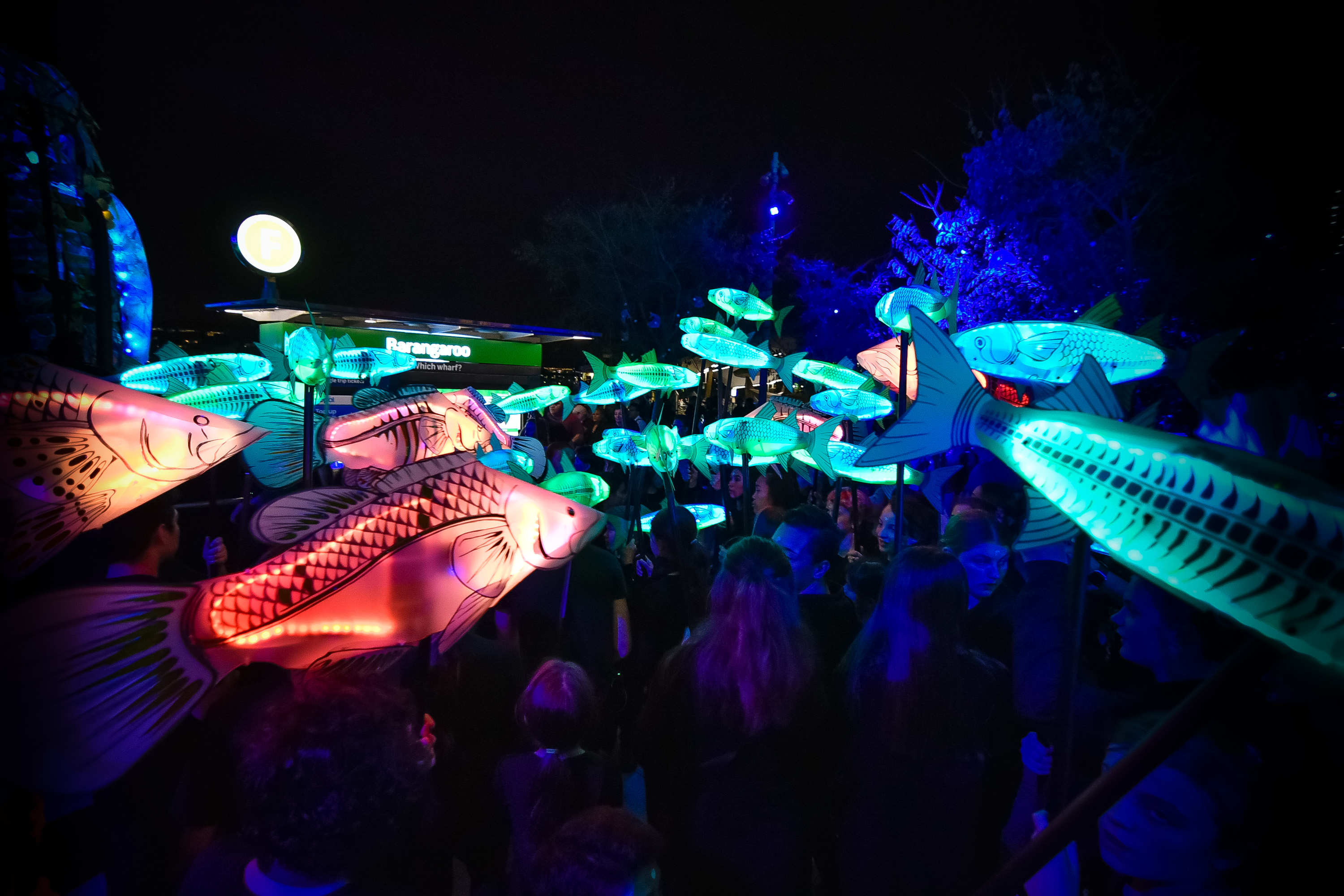 For Vivid Sydney 2019, Exchange Place in Barangaroo will transform into Winter Camp, where visitors will experience layers of light, sound and puppetry reflective of the land and water. Winter Camp draws inspiration from the changing of the seasons, and invites visitors to share in the practice of hunting and gathering.